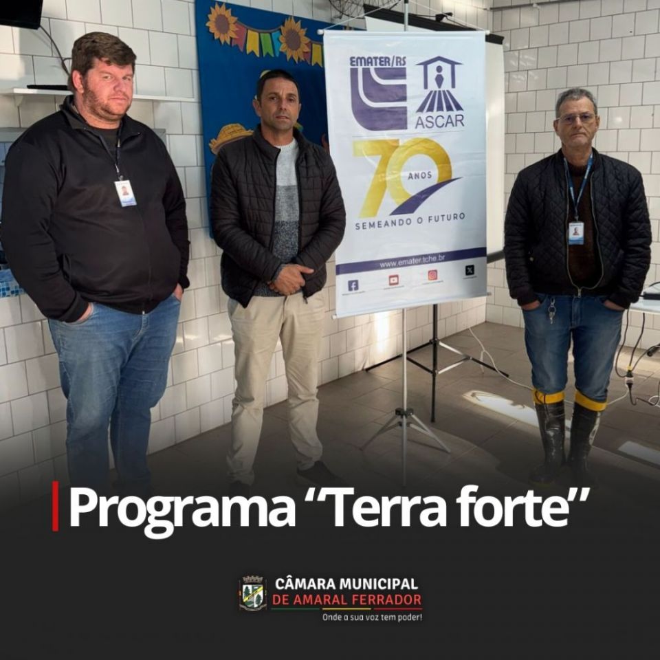 Moisés Essi complementou, destacando a importância da iniciativa para o futuro da agricultura em Amaral Ferrador: "Como extensionista da EMATER e vereador, vejo de perto as demandas de nossos produtores. O 'Terra Forte' não é apenas um programa, é um investimento no futuro, preparando nossas lavouras para os desafios do clima e garantindo a sustentabilidade de nossas propriedades por gerações."